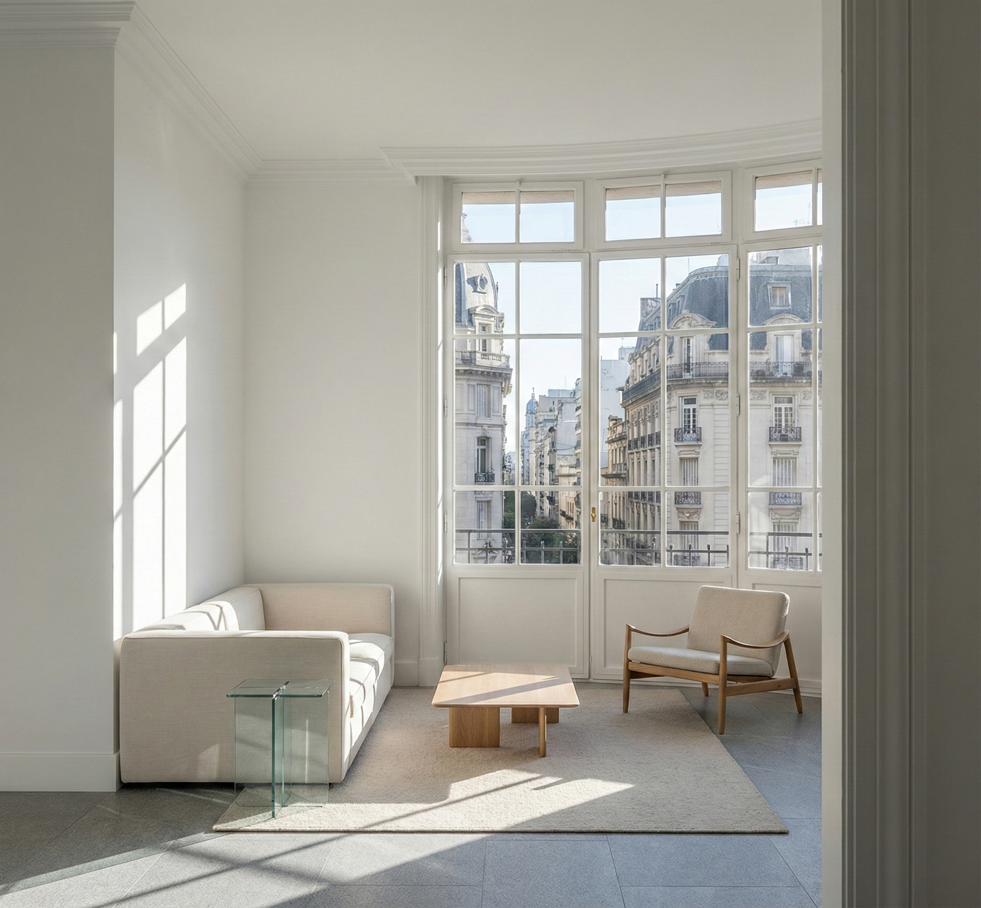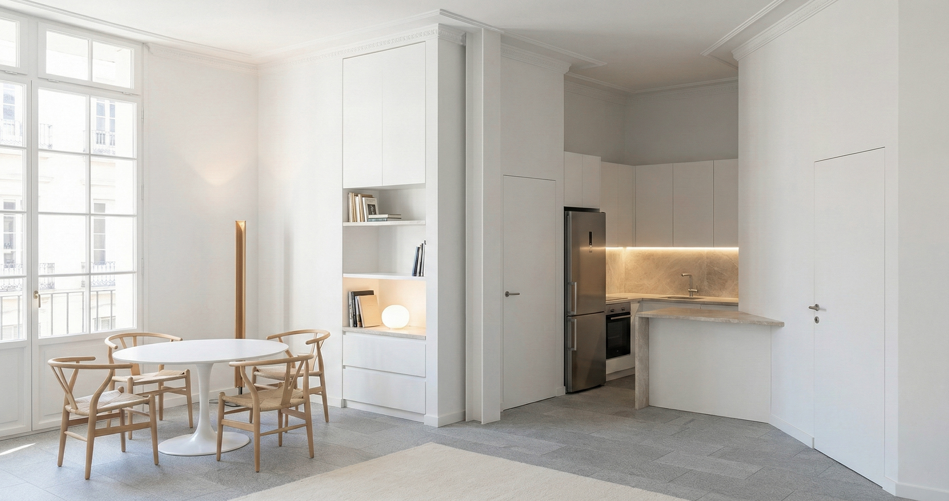 A través de una puesta en valor de la estructura clásica y la incorporación de volúmenes sobrios, se logra un espacio ecléctico donde lo nuevo y lo antiguo se funden sin competir. Una paleta de materiales neutros y texturas homogéneas potencia la entrada de luz natural, transformando el departamento en un refugio de serenidad frente a la vorágine urbana.
